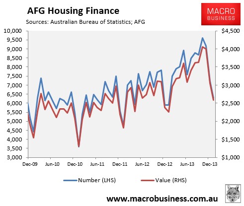 Nevertheless, the AFG data supports the ABS housing finance release for November (the latest available), which revealed a continued dominance of investors in the mortgage market, particularly in New South Wales.
