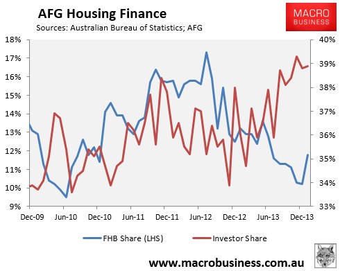 However, investors are still driving new mortgage demand, with their share of mortgages at 38.9% in January, according to AFG (see next chart).