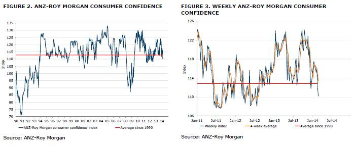 Despite this, the lift in consumer confidence for much of the past 18 months suggests consumer spending will improve this year. We forecast household consumption to increase by 2.4% this year, strengthening to growth of around 3.2% in 2015.