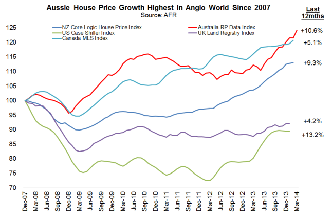 …According to a valuation benchmark regularly cited by the RBA – Australian house prices divided by family incomes – the asset class is three months from piercing the valuation peaks touched in June 2006 and June 2010. After both episodes, home values fell: by 6.1 per cent in 2008 and 6.6 per cent in 20011-12 according to RP Data…And there’s no evidence the boom is abating.