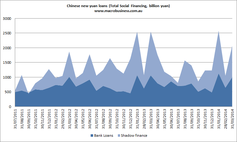 This is weak data and an uncomfortable mix to boot. For the first quarter the year over year shrinkage in new yuan loans is 7%. Moreover, the shadow bank component is holding up even as M2 undershoots, placing the PBOC in a quandary. It’s undershooting on money supply but isn’t reining in the relative contribution of shadow credit very fast, if at all.