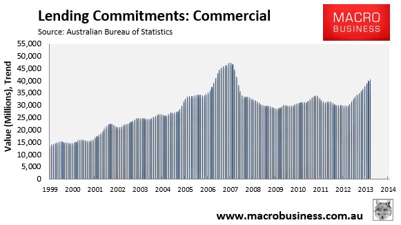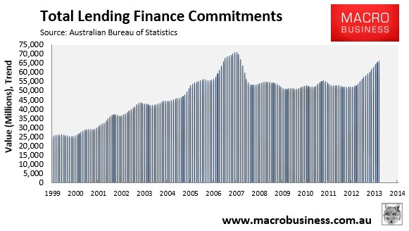 The below chart plots total lending in trend terms. As you can see, the volume of lending is fast approaching the highs reached in December 2007, prior to the onset of the Global Financial Crisis (see next chart).