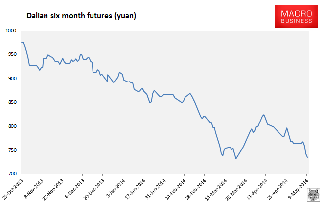The odds are that this imbalance is not going to improve in the second half. Supply growth will ease but demand is likely going to weaken as well as the property shakeout gains pace. A repeat of the 2010, 2011, 2012 production pattern looks a fair bet (see above chart). We may see housing stimulus by year end but remember that construction lags easier credit by six months so we’re talking 2015 before we see any real pickup in iron ore demand. As well, the prudential measures around ponzi borrowers in the steel sector are going to remain in place so more default shocks keep the risk of further price gapping live.