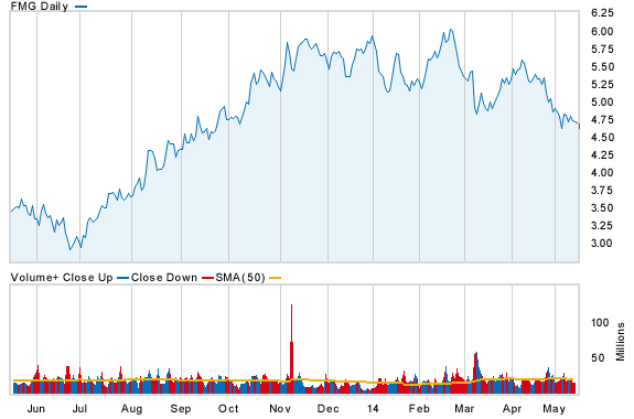 The great unreported corporate story of our time – the travails of Fortescue Metals Group – goes on. This afternoon the share price took out it’s intraday low for the year and was last trading at $4.53: