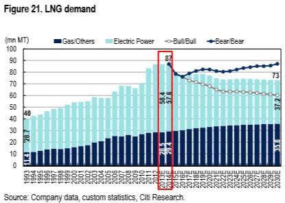 In another potential blow to Australia’s magnificently expensive seven LNG projects, Citigroup has released an interesting research report forecasting a “slump” in Japanese LNG demand from 2015: