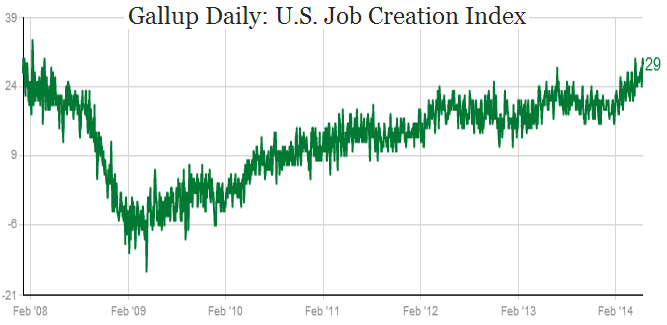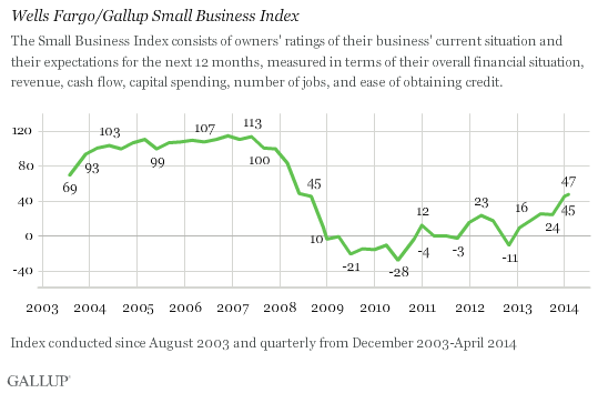 3. Small business surveys show owner sentiment, which had remained weak for years, finally on the rise.