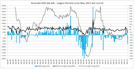 ANZ has released its job ads survey for May, which revealed a sharp 5.6% decline in the number of job advertisements – the first fall in five months.