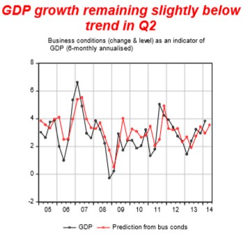 Our wholesale leading indicator suggests much weaker underlying conditions, pointing to further below trend economic growth in the second quarter of 2014 – and little near term improvement in prospect in demand.