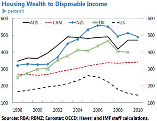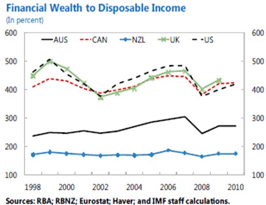 It has also meant that too much of Australia’s capital/wealth has been tied-up in housing, as illustrated by the below charts from the IMF (note: New Zealand shares essentially the same banking system as Australia):
