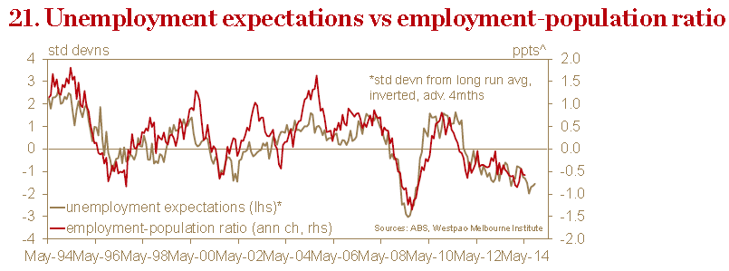 ― The Westpac-Melbourne Institute Unemployment Expectations Index registered a marginal decline, falling 1.1% from 158.3 to 156.5. That is a significant improvement on the peak in unemployment fears back in Mar, when the index hit 164.4, but still significantly ‘worse’ than the 144.7 reading in Nov (recall that higher readings mean more consumers expect unemployment to rise over the next year).