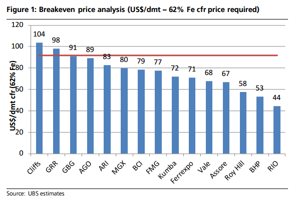 Don’t confuse that with dry metric tonne, which is obviously smaller and the more important comparative measure. Anyways, referring to the trusty UBS grade discounted break even chart, MGX is not bad:
