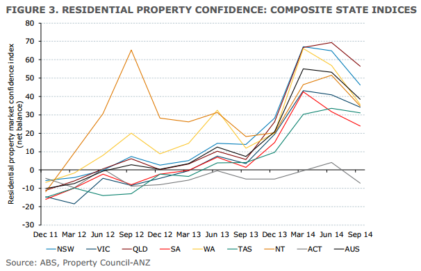 The Australian Property Confidence Index fell 1 point to 131 in the September Quarter. While this is down from the high of 140 in Q1 of this year, it remains higher than a year ago (121) and well above the levels recorded for much of the past three years (see Figure 1). Confidence across the residential and non-residential property sectors remains strong, is more positive than broader business confidence, and is in stark contrast to the recent weakness in consumer confidence.