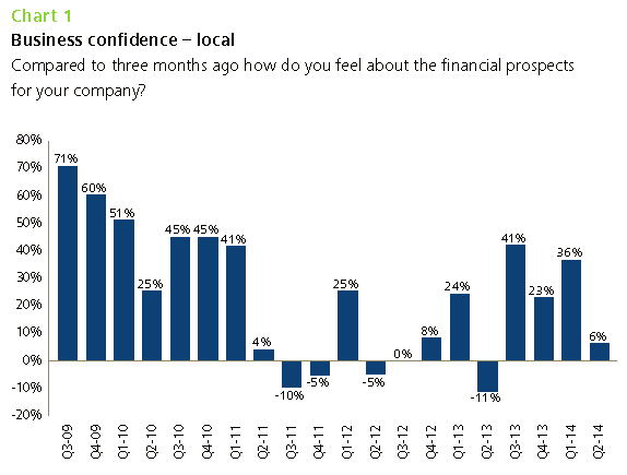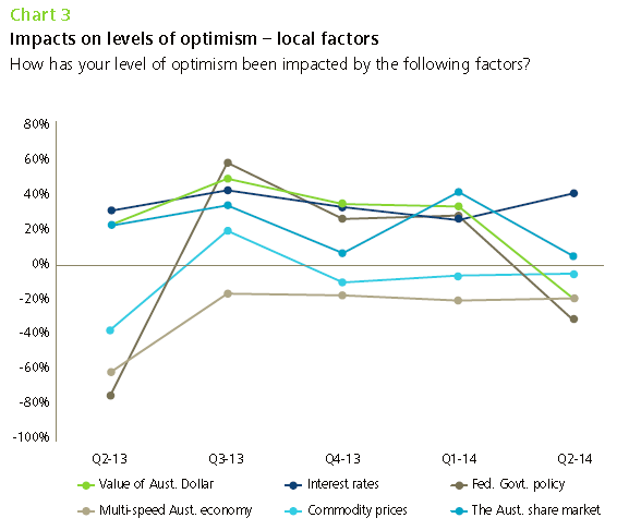 This decline has been driven by an increase in federal policy uncertainty, the recent uptick in the value of the Australian dollar and continuing concerns over the multi-speed economy
