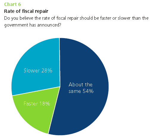 However, 54% of CFOs agree with the rate of fiscal repair embodied within the Federal Budget while 18% say it should be faster