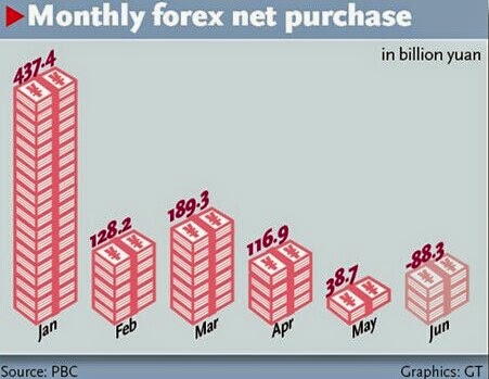 ……China’s central bank and commercial banks sold 88.3 billion yuan ($14.3 billion) worth of foreign exchange on a net basis in June, according to a Reuters calculation based on central bank data released on Tuesday.