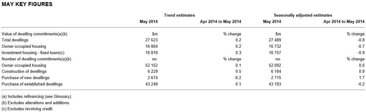 The Australian Bureau of Statistics (ABS) has released housing finance data for the month of May, which registered no seasonally-adjusted change in the number of owner-occupied finance commitments over the month:
