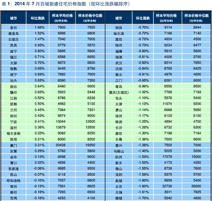 Quanzhuo in Fujian province led the 100 cities with a 1.66% increase in new home prices, followed by Qinhuangdao (a city with excess inventory) and Shijiazhuang, the latter two both in Hebei province. In total, 24 out of 100 cities saw price increases.