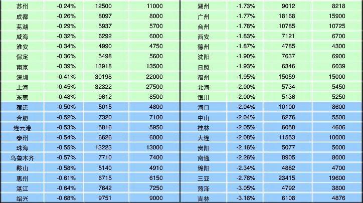 At the other end, Jilin in Jilin province and Heze in Shandong province led the losers with losses of more than 3% mom.