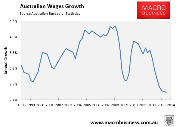 As noted earlier, figures released today by the ABS revealed that Australian wages growth fell to the slowest pace on record (1997) in the June quarter, clocking it at only 2.6% (s.a. and trend) over the year: