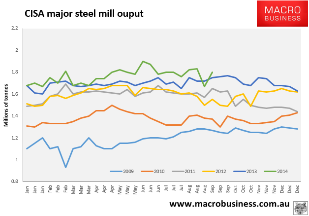 Paper is stalled and physical bleeding. CISA major steel mills output data for early September rebounded from the August crash. That’s a good news bad news story. Demand worries can ease a little but steel pricing pressure will resume. Texture from Reuters: