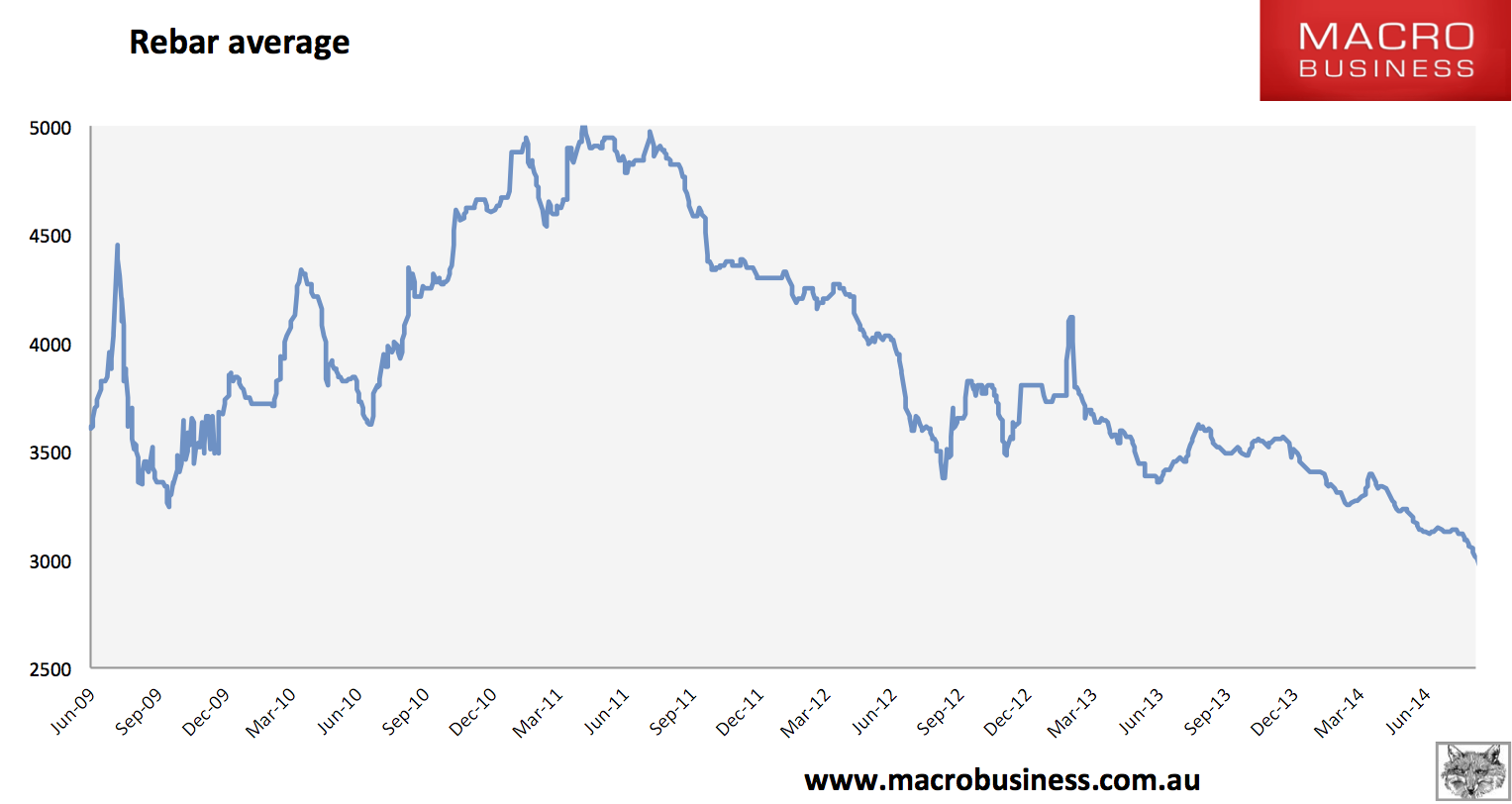 A small rally on Friday in 12 month iron ore swaps and rebar futures, but the spot price for the former remains well below $USD80 per ton: