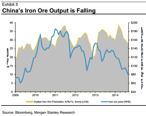Hmmm, not very convincing. What’s the Wood Mackenzie evidence given the frustrating opacity of the Chinese market? As well, the MS list of seaborne closures includes 5mtfor London Mining, which is still open and has been rescued overnight (though admittedly only by African Minerals which is itself in trouble).