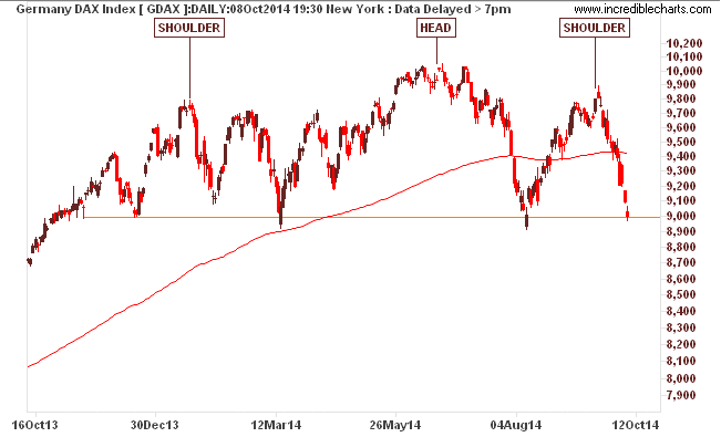 Although the cash DAX finished its session slightly flat, threatening to confirm the bearish head and shoulders on the daily chart, the after hours futures pummeled the bourse: