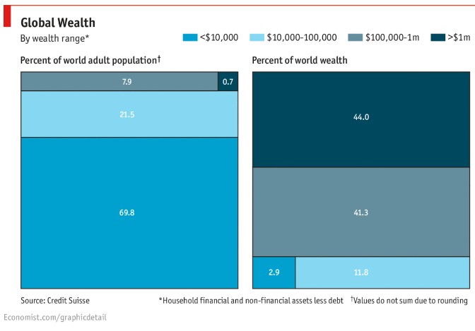 The Economist has published a neat new chart showing the extent of global wealth inequality, drawing on data from Credit Suisse’s latest global wealth report: