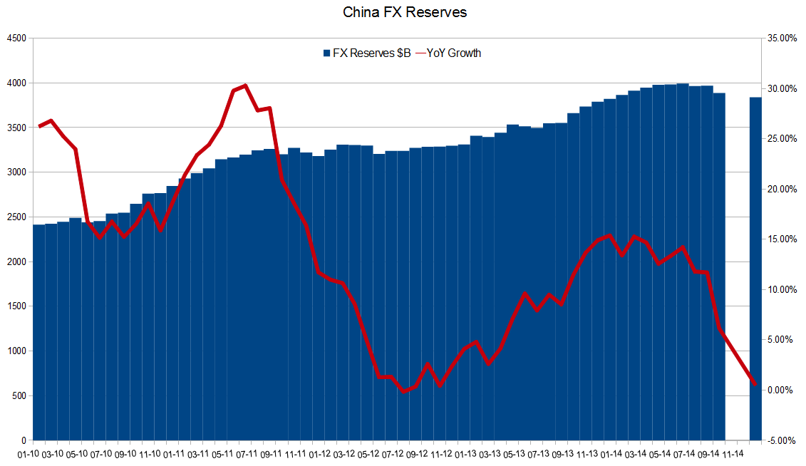 Both are true. The Chinese central bank can take advantage of a falling euro to diversify away from the U.S. dollar, as it did during the prior rounds of the European sovereign debt crisis. The goal may not be to devalue the yuan, but as the euro share of reserves rises and the Chinese reform the financial system, the market increasingly determines the direction of the yuan and that value is increasingly tied to the EURUSD cross. The Chinese buy yuan, propping up the euro versus the dollar, while devaluing the yuan versus both. Then if the euro (and other currencies) tumbles versus the U.S. dollar, the yuan decouples from the dollar and recouples with the non-dollar currencies, Weak yuan not a product of ‘engineering’: