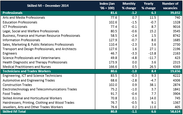 The DEEWR job vacancy report for December is out and fell 0.9% on the month:
