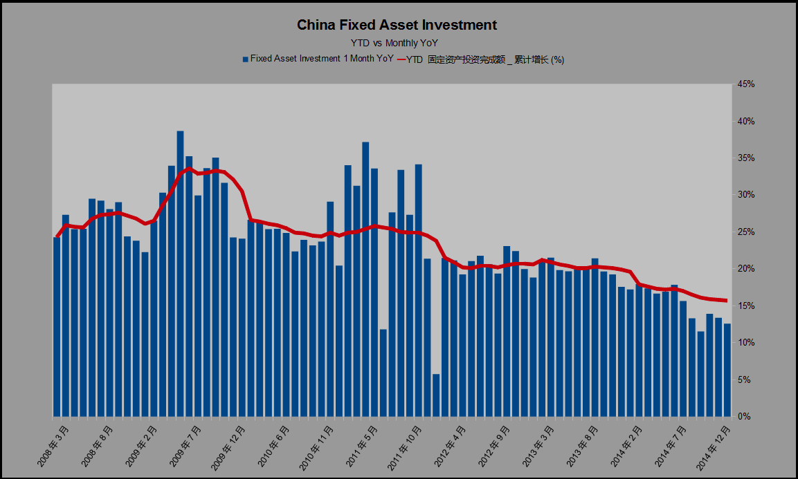 One is the collapse in real estate investment, which has fallen far below the growth in fixed asset investment: