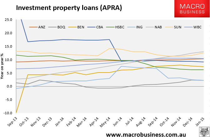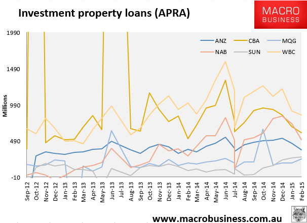 APRA released its February lending data today and there may some good news about APRA’s wet lettuce macroprudential. There are still a bunch of banks lending well above the 10% year-on-year growth threshold for investment loans: