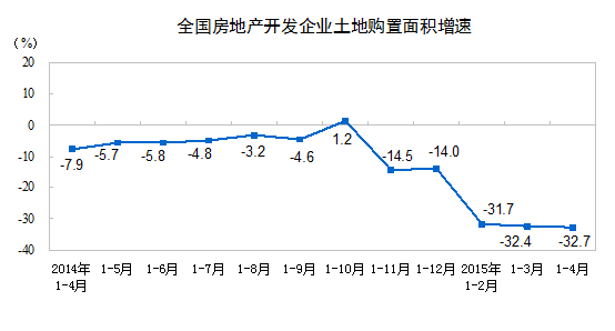 Charts below. NBS: 2015年1-4月份全国房地产开发和销售情况: