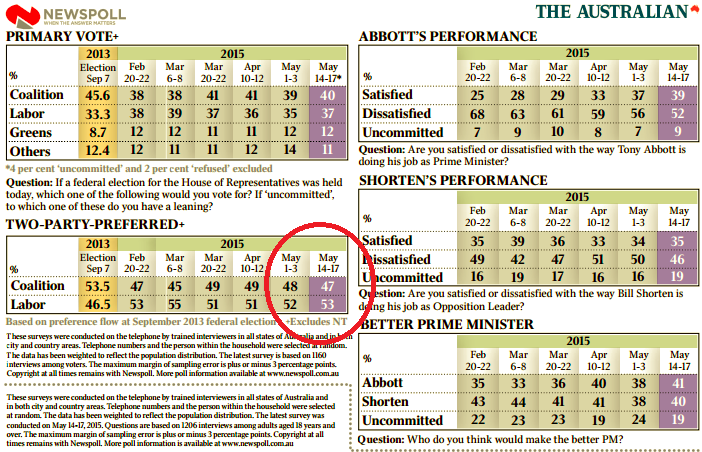 Perhaps there’s no early election because the Newspoll “bounce” was actually a fall for the Coalition.