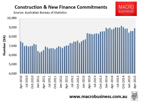 Yesterday’s housing finance data for April registered a much needed rebound in buyer demand for newly constructed dwellings following a period of weakness, with the number of commitments for construction and new dwellings rising a combined 3.5% in April and by 1.4% over the year (see next chart).