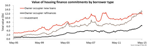 Year-on-year the value of owner occupier commitments has increased by 8.1% compared to a 19.4% rise in investment mortgage lending. Based on this data the proportion of total lending to investors was at a record high 41.9%. If you exclude refinances and look at just new lending, investors accounted for a record high 52.5% of all lending over the month.