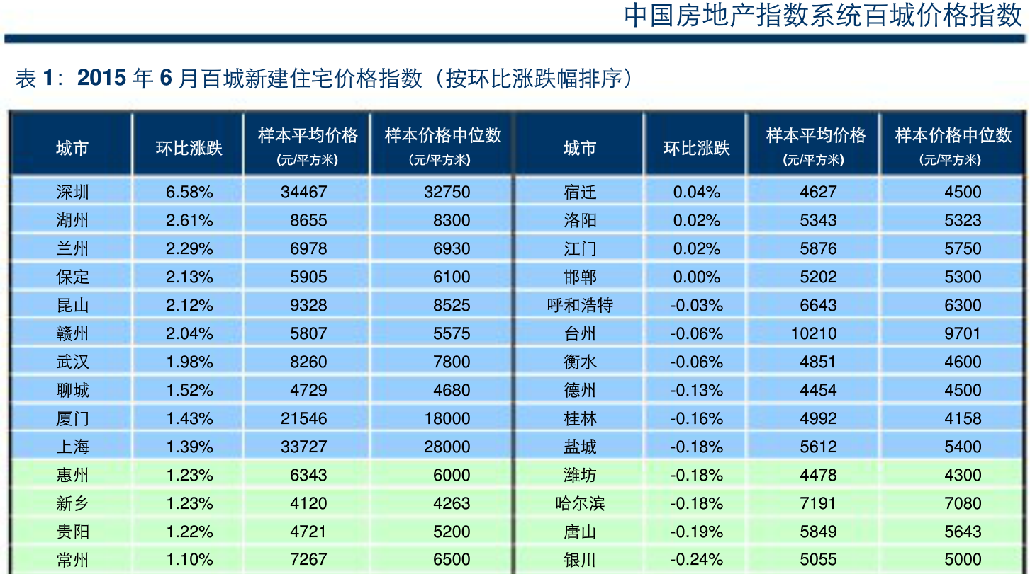 Source: 2015年6月中国房地产指数系统百城价格指数报告
