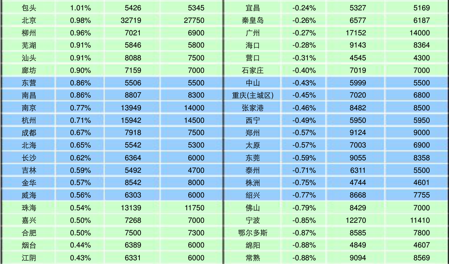 The bottom cities were not no names. Rizhao, Jinan (both in Qingdao), Kunming, Urumqi, Sanya were among the cities with the largest price declines.