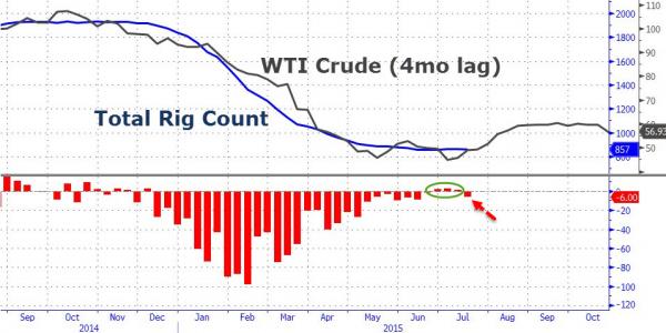 The Brent oil price was virtually unchanged Friday at $57.08. News was mixed with the US rig count coming off again falling 6 to 857: