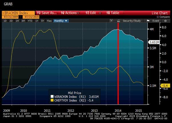 The PBOC stated that based on their inflation-based real exchange rate calculations the CNY is 17% overvalued. Leaving the door open to a 10% or more devaluation. A lot of people in the market are speculating that this is primarily about boosting exports and stimulating the slowing economy. While this no doubt will help, the primary concern for the government is deflation. Producer prices declined 5.4% year-on-year in July – its biggest drop since 2009. The driving force behind China’s devaluation is to halt deflation and ease monetary conditions.