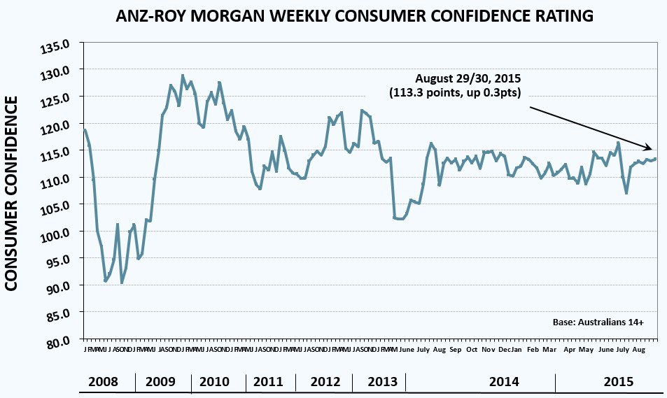 “The impact on the Australian economy from recent international events and concerns about China’s growth outlook are hard to determine at this stage. Australia’s ability to withstand any hit to global activity is limited by the fact that the economy is already battling several headwinds: soft commodity prices, weak wages growth, and subdued non-mining business investment. In this environment consumer confidence could consolidate around current levels, but is unlikely to see a sustained rise from here”.