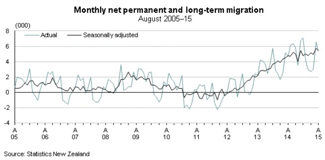 Statistics New Zealand last week released its permanent & long-term migration figures for August 2015, which revealed that net migration to New Zealand remained near record highs in seasonally adjusted terms:
