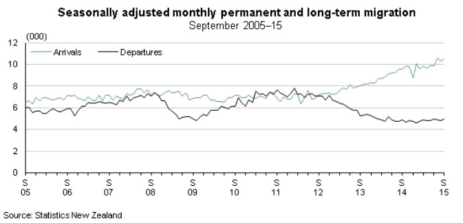 Statistics New Zealand has released its permanent & long-term migration figures for September 2015, which revealed that net migration to New Zealand continues to boom: