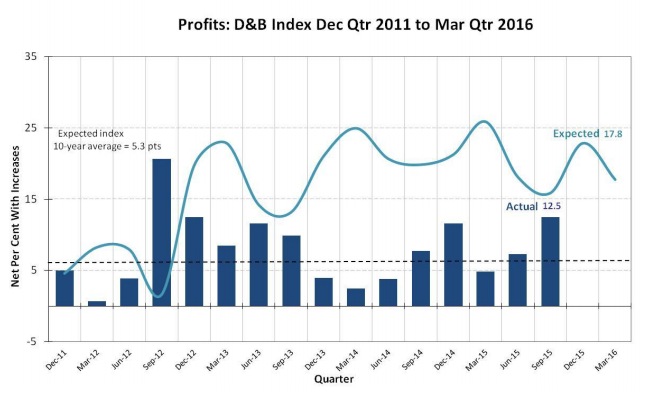 The Dun and Bradstreet business expectations index for Q1 2016 tumbled today across most metrics. Sales: