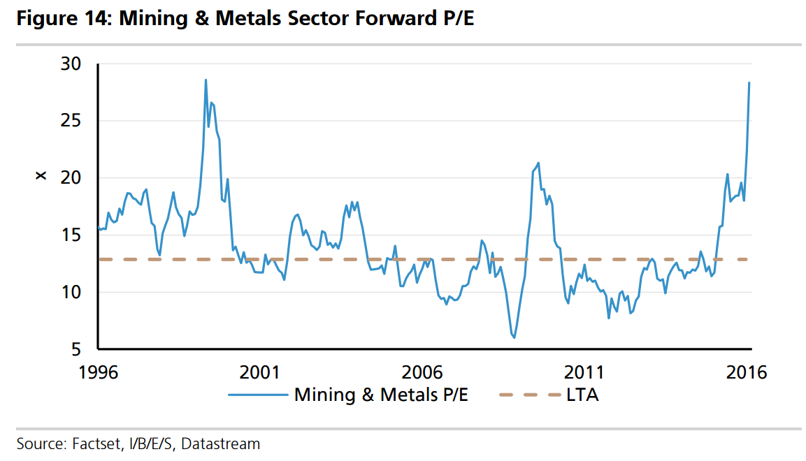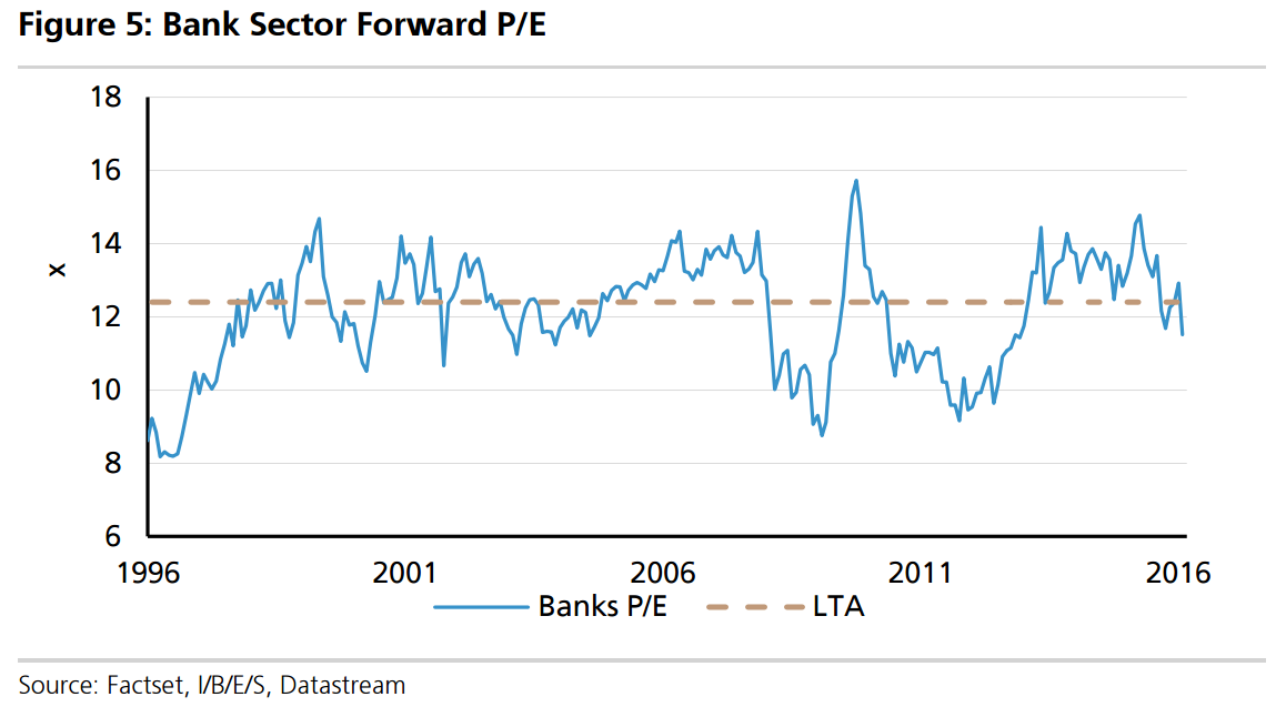 But the risks are still rising. Bad debts will perhaps be more of a 2017 story as the cycle deteriorates but the share market ought to be discounting that this year, and as you can see when cycles end banks fall much further than this. I expect we’ll see rallies this year, not least when rate cuts resume, but they look more like a good short to me at those points than a buy and hold long.