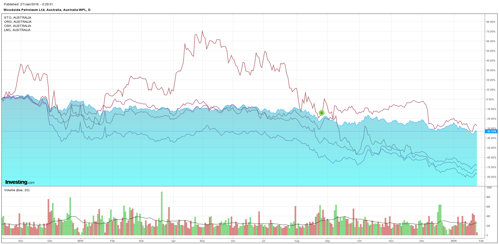 The other two causes of weakness are the dodgy Apple report after the close in the US and API US oil inventory report which showed an huge 11 million barrel build and whacked oil. Which is where we find LNG with WPL down -1.5%, OSH down -2.4%, ORG down -4.4%, STO down -1.7% and LNG down -2%: