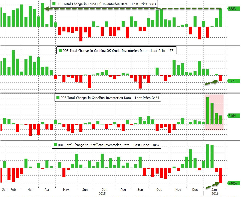 In other price sensitive news, the US DOE weekly inventory report exploded higher by 8.8 million barrels: