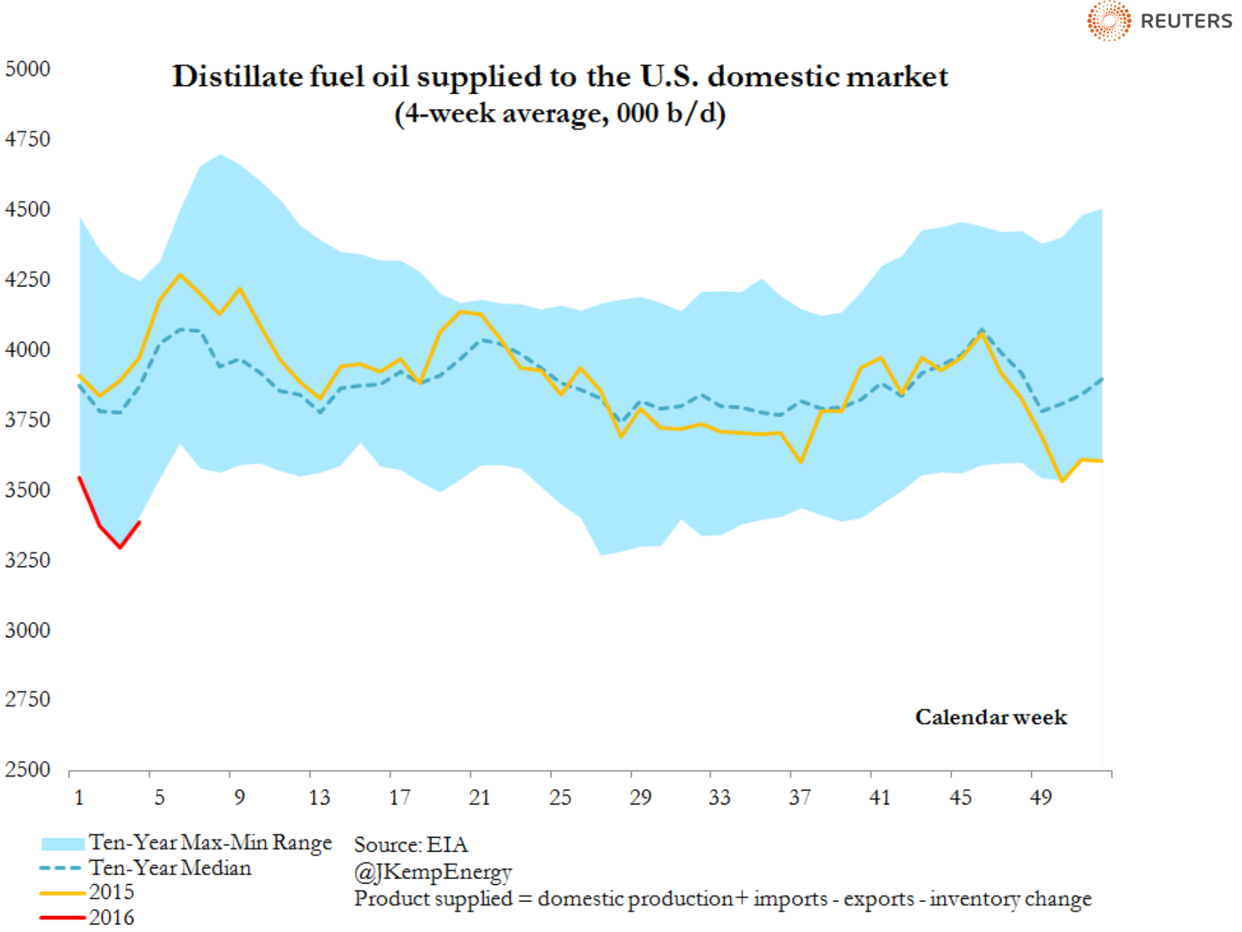 Indeed much of the report was bearish with gasoline demand down year on year, from John Kemp: