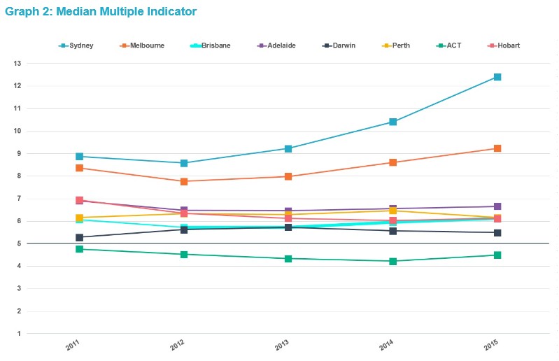 The international standard of affordability is a measure called the ‘Median Multiple’, designed by the World Bank. It is found by dividing median dwelling prices by gross, annual median household income. An indicator of 5 or more is considered to be highly unaffordable.