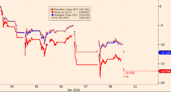 UPDATE: China stock markets have slumped at the open, down 2% or so. Heres the last six days worth of action, via Patrick McGee at FT: